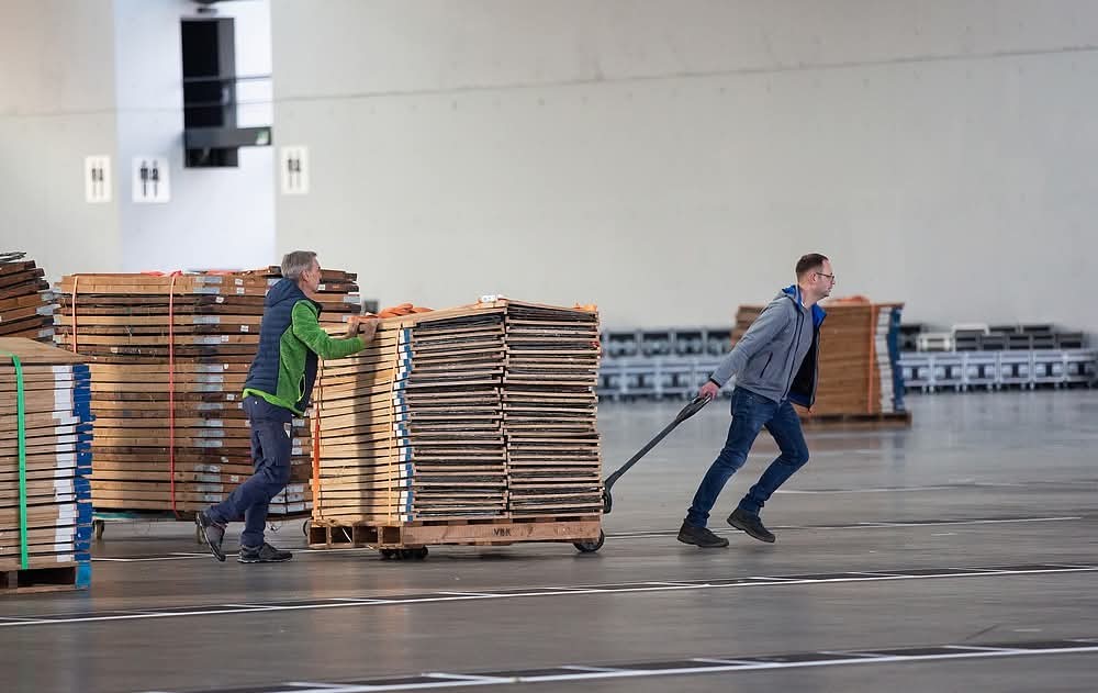 weiter geht es mit der Anlieferung vom Heu, verteilen der Käfige, Mitarbeiterkantine vorbereiten, Probekäfig aufstelle,...